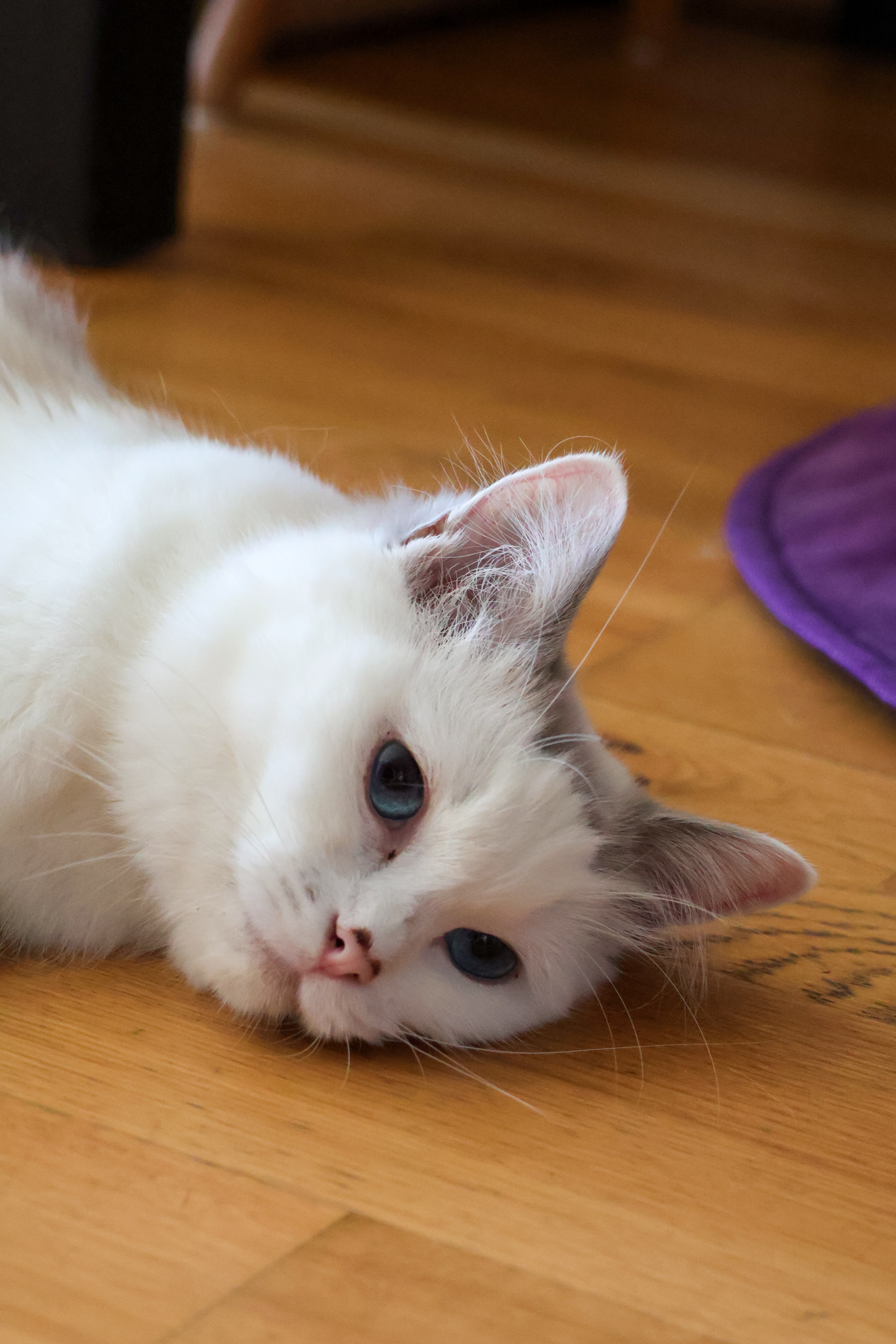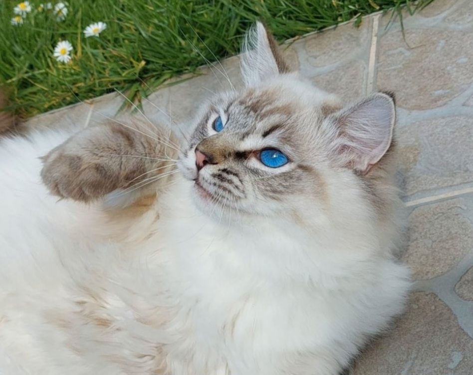 Mâle reproducteur – 4× Champion de FranceSeul mâle de la chatterie, il coche de nombreuses caractéristiques recherchées chez le Ragdoll et contribue pleinement à la transmission de ces qualités.